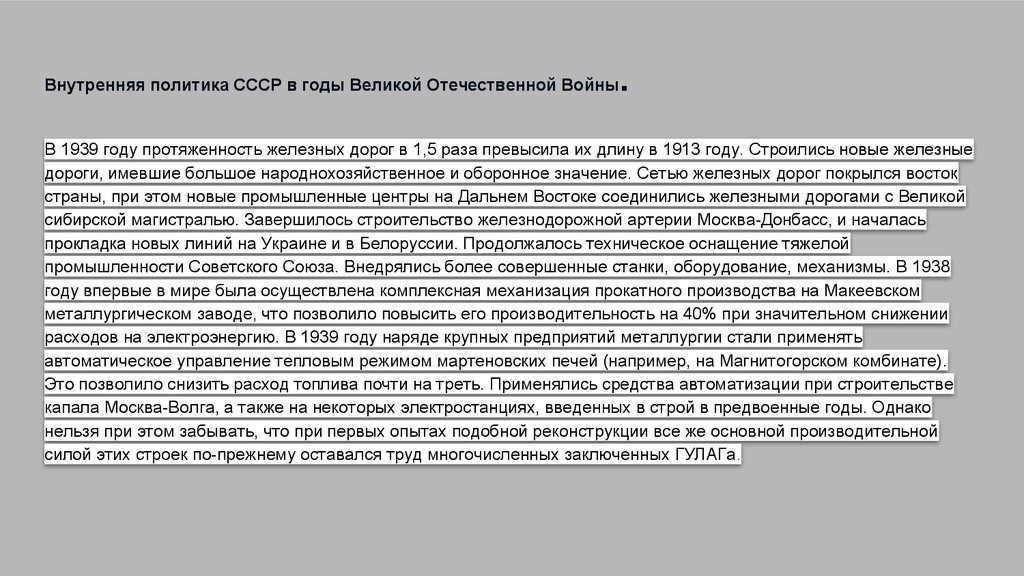 Внутренняя политика СССР в годы Великой Отечественной Войны.