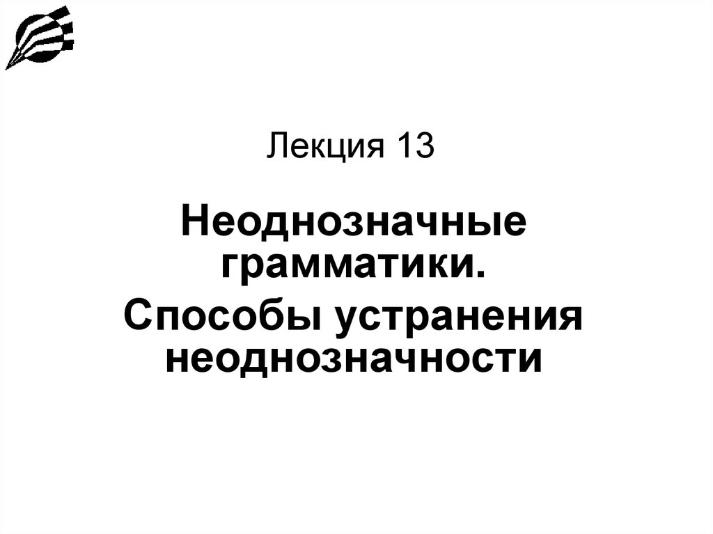 • Общего алгоритма, выясняющего, однозначна лиграмматика, не существует. Приведем несколько