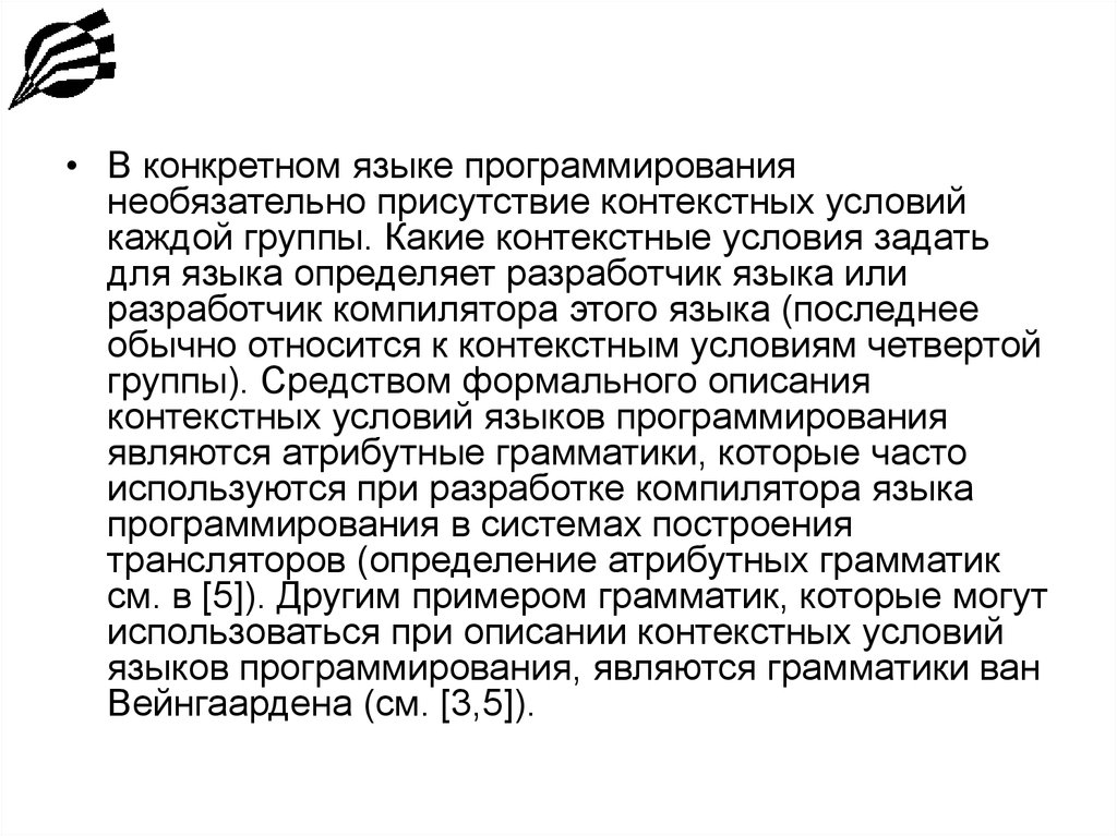 • В конкретном языке программированиянеобязательно присутствие контекстных условий