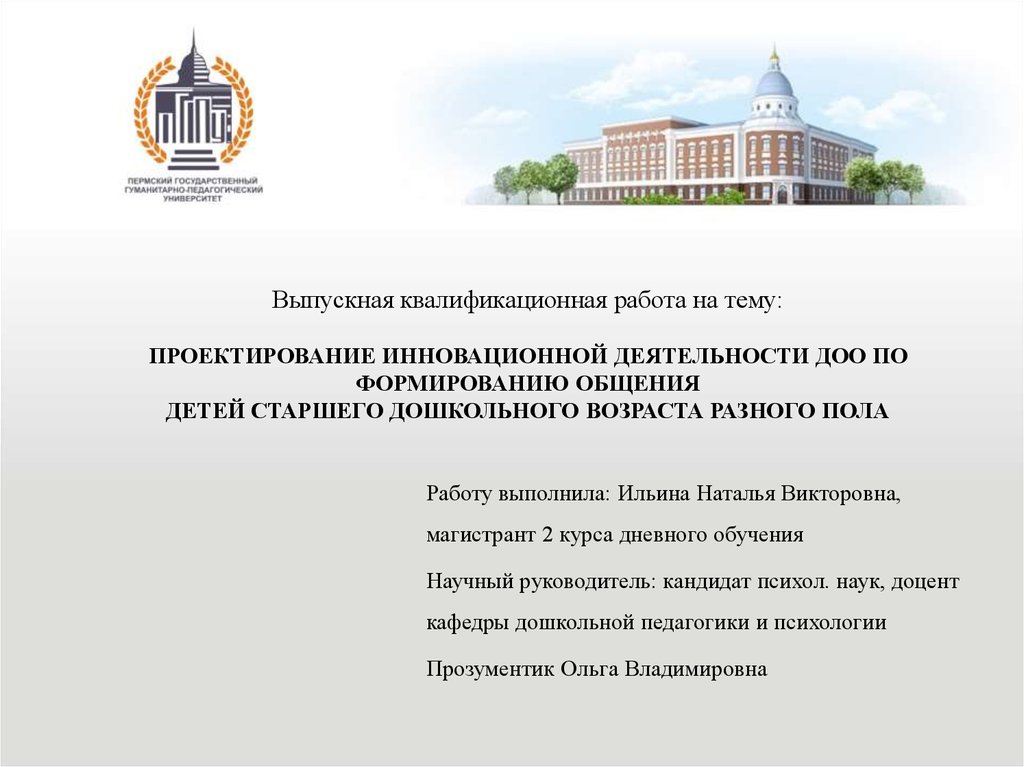 1. Выпускная квалификационная работа на тему: ПРОЕКТИРОВАНИЕ ИННОВАЦИОННОЙ ДЕЯТЕЛЬНОСТИ ДОО ПО ФОРМИРОВАНИЮ ОБЩЕНИЯ ДЕТЕЙ СТАРШЕГО