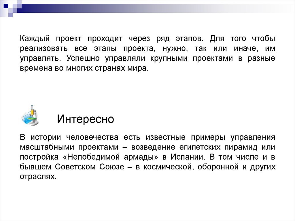 Каждый проект проходит через ряд этапов. Для того чтобыреализовать все этапы проекта, нужно, так или иначе, им