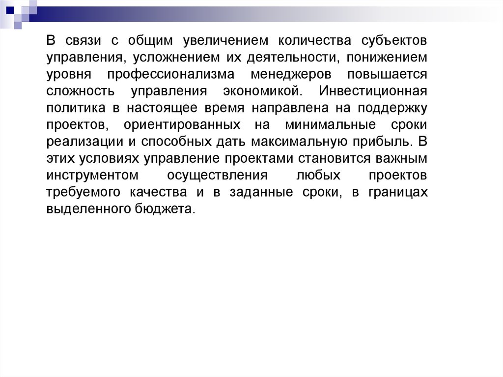В связи с общим увеличением количества субъектовуправления, усложнением их деятельности, понижением
