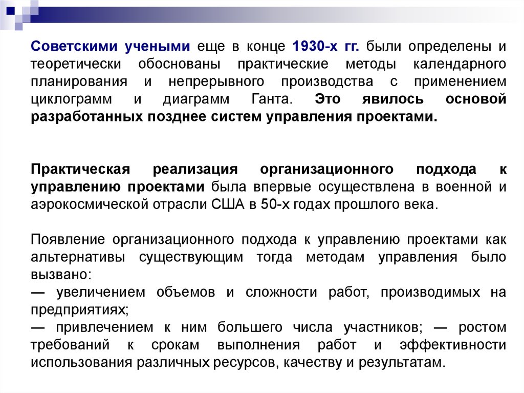 Советскими учеными еще в конце 1930-х гг. были определены итеоретически обоснованы практические методы календарного