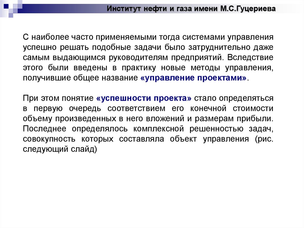 Институт нефти и газа имени М.С.ГуцериеваС наиболее часто применяемыми тогда системами управления