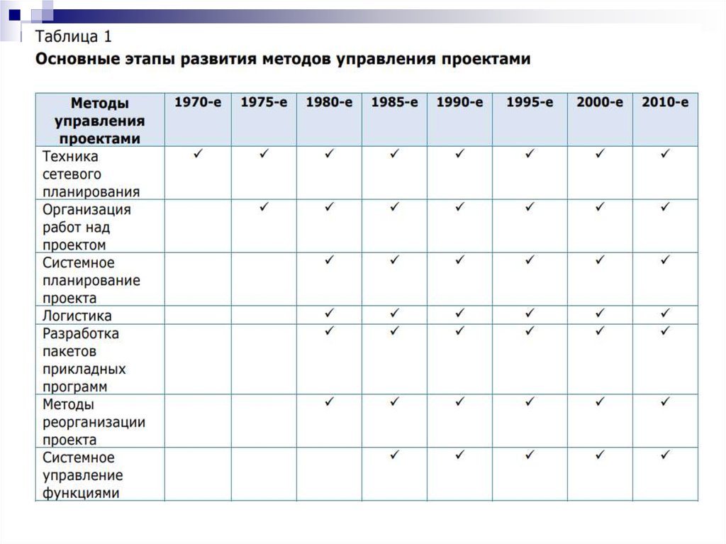 Одними из первых разработанных методов управления проектамив конце 1950-х годов были методы сетевого планирования и