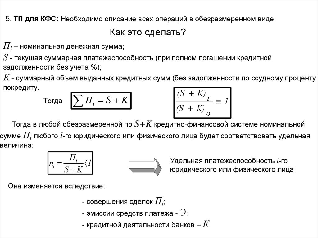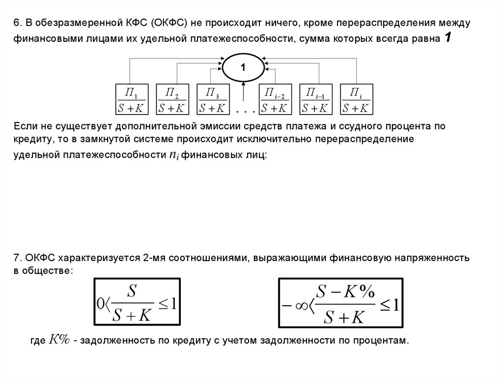 6. В обезразмеренной КФС (ОКФС) не происходит ничего, кроме перераспределения междуфинансовыми лицами их удельной платежеспособности, сумма которых всегда равна 1