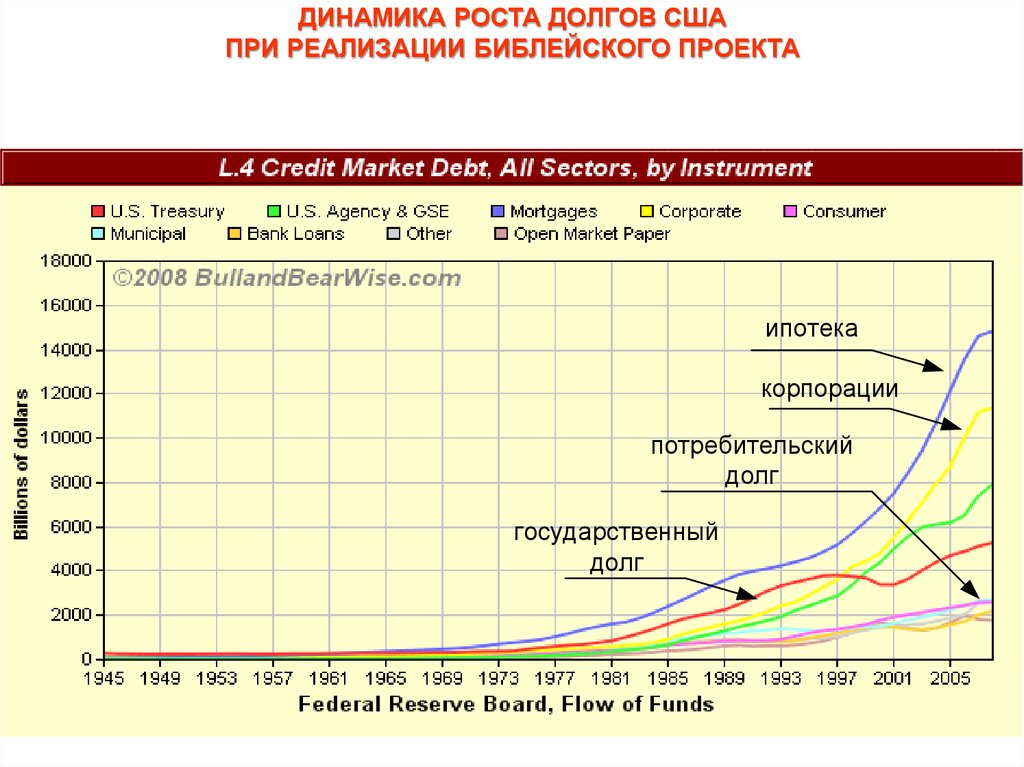 ДИНАМИКА РОСТА ДОЛГОВ СШАПРИ РЕАЛИЗАЦИИ БИБЛЕЙСКОГО ПРОЕКТА
