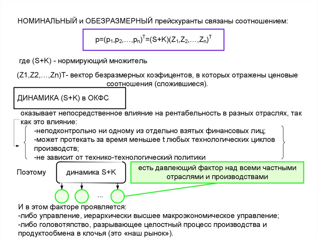 НОМИНАЛЬНЫЙ и ОБЕЗРАЗМЕРНЫЙ прейскуранты связаны соотношением:p=(p1,p2,…,pn)T=(S+K)(Z1,Z2,…,Zn)T