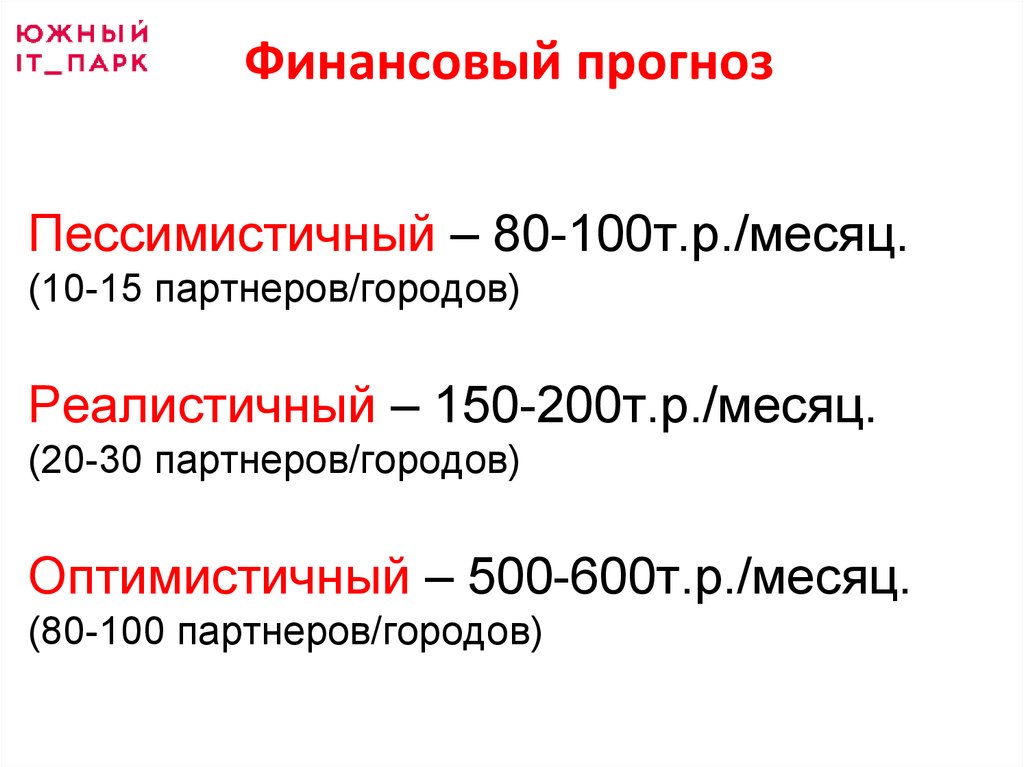 Финансовый прогнозПессимистичный – 80-100т.р./месяц.