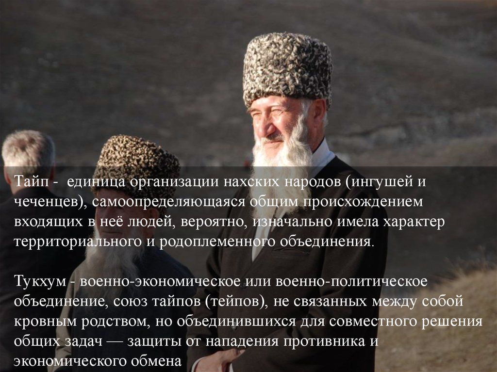 Тайп - единица организации нахских народов (ингушей ичеченцев), самоопределяющаяся общим происхождением