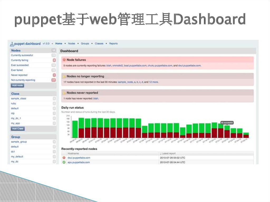 - 分担puppetmaster来自于客户端的请求压力,可以