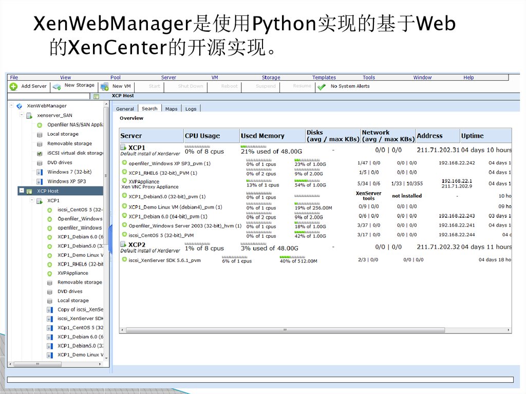XenWebManager是使用Python实现的基于Web的XenCenter的开源实现。