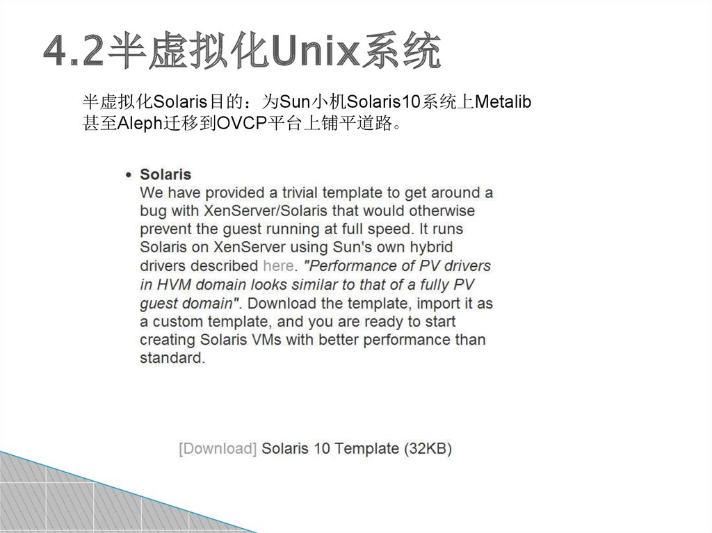 4.2半虚拟化Unix系统半虚拟化Solaris目的 为Sun小机Solaris10系统上Metalib