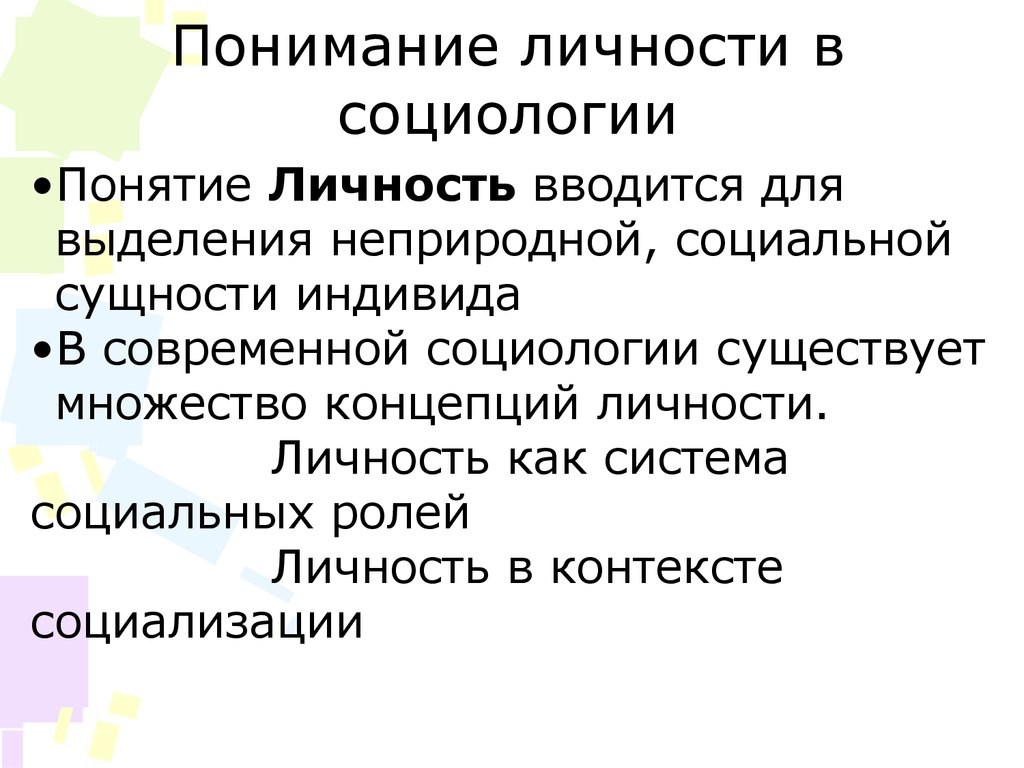 Понимание личности всоциологии