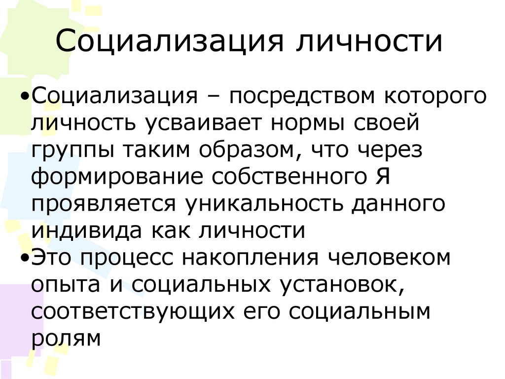 Социализация личности•Социализация – посредством которого