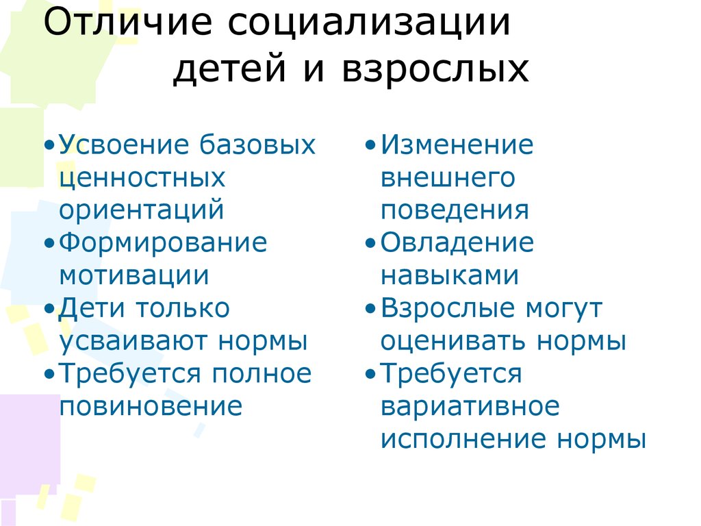 Отличие социализациидетей и взрослых