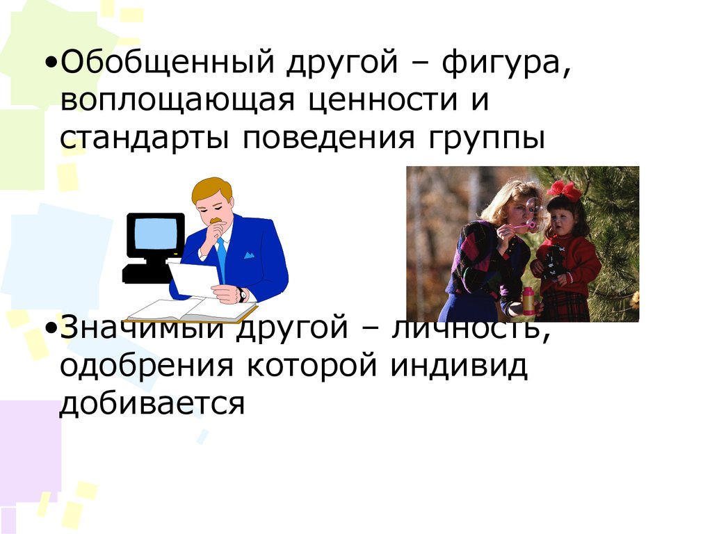 •Обобщенный другой – фигура,воплощающая ценности и