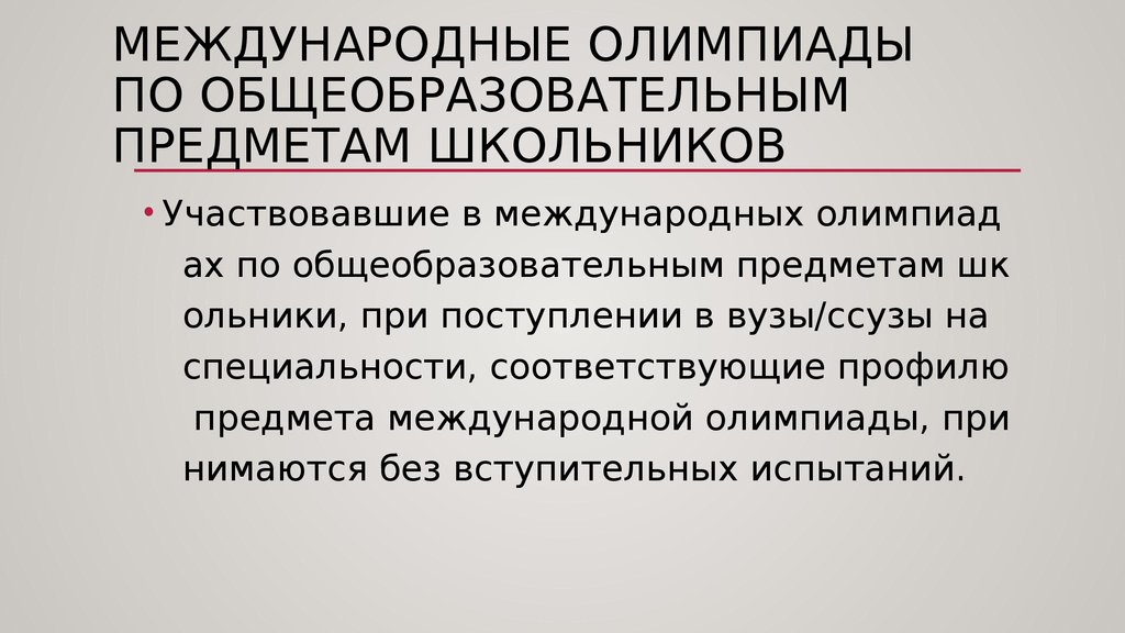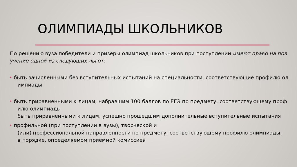 ОЛИМПИАДЫ ШКОЛЬНИКОВПо решению вуза победители и призеры олимпиад школьников при поступлении имеют право на пол