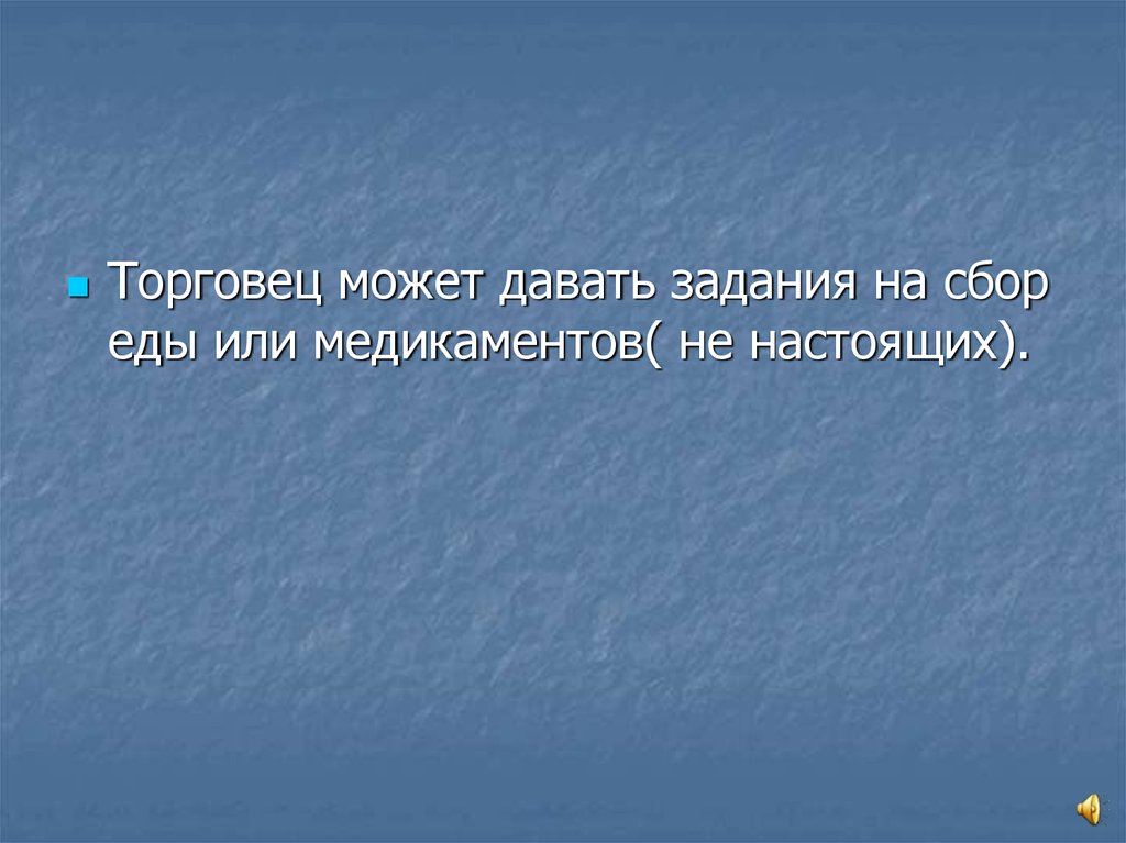 Торговец может давать задания на сбореды или медикаментов( не настоящих).