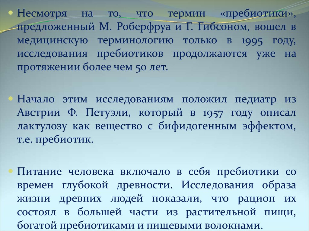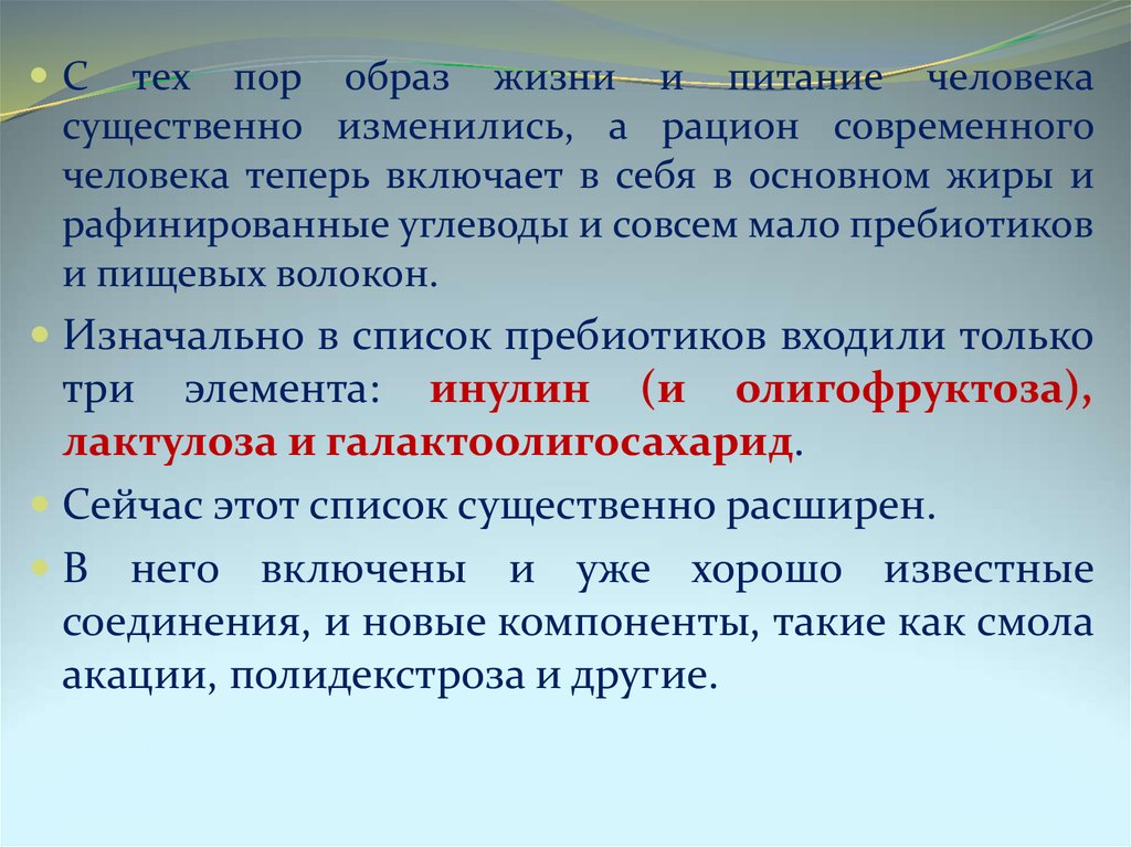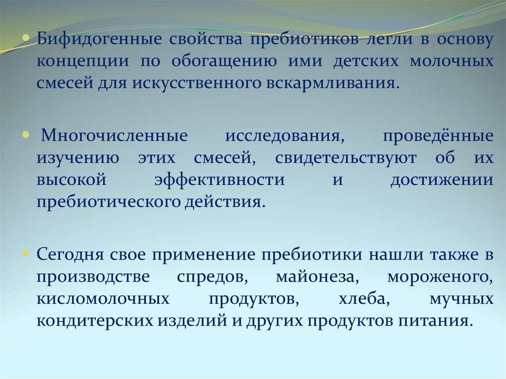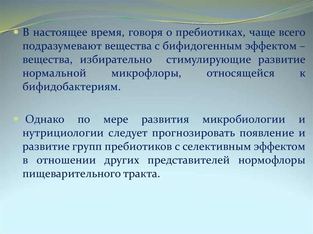 В настоящее время, говоря о пребиотиках, чаще всегоподразумевают вещества с бифидогенным эффектом –