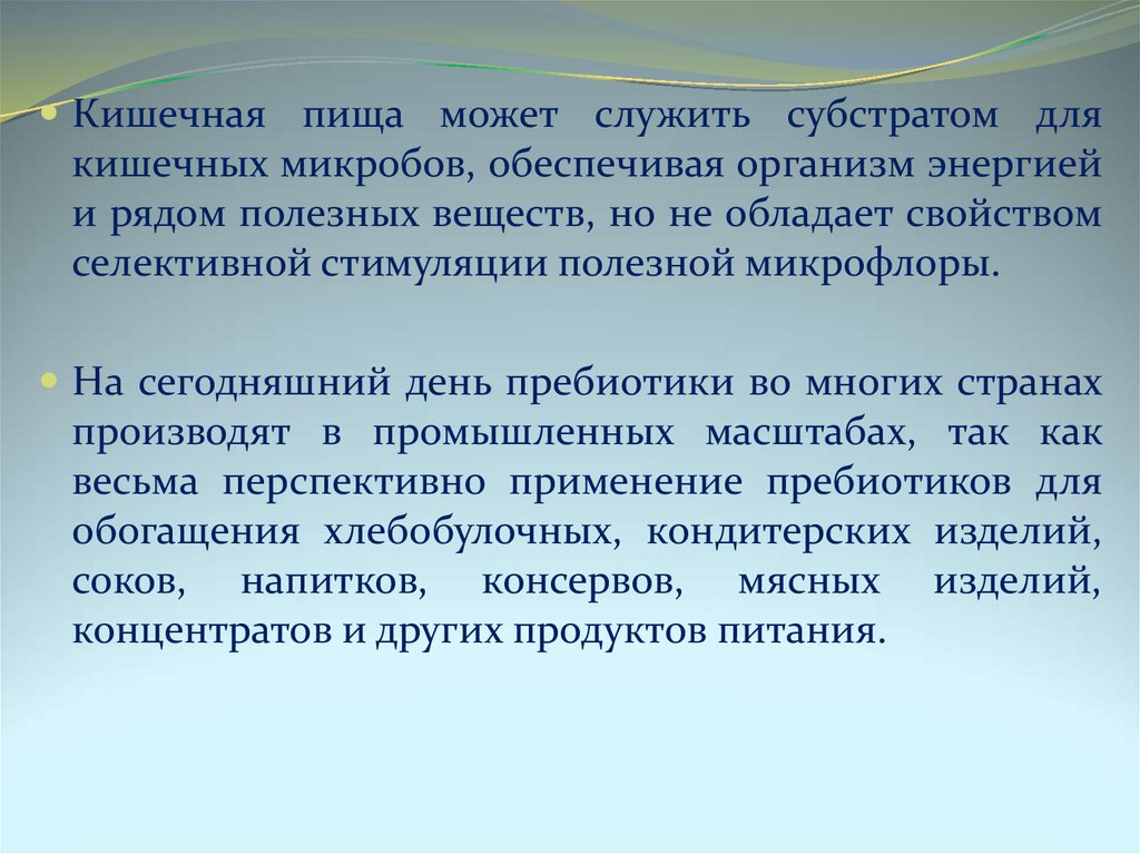 Ключевым моментом в характеристике пребиотиковявляется их избирательное стимулирование полезных