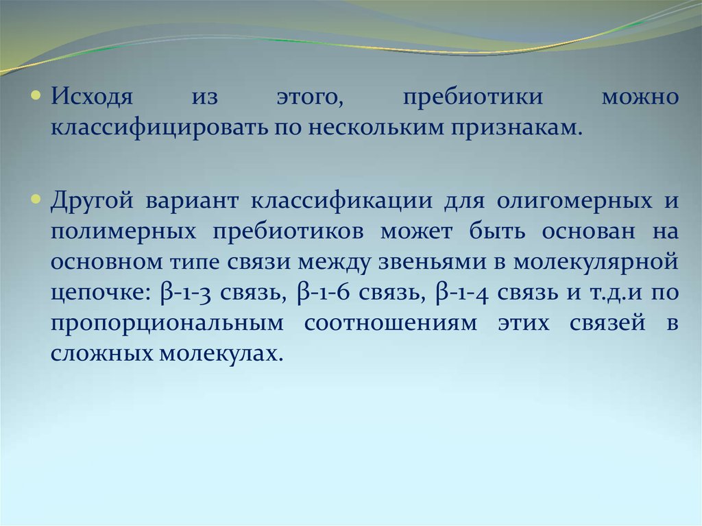 Все пребиотики можно классифицировать, исходя изнескольких критериев.