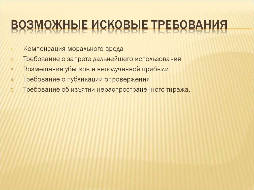 ВОЗМОЖНЫЕ ИСКОВЫЕ ТРЕБОВАНИЯ1.