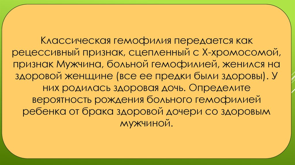 Классическая гемофилия передается какрецессивный признак, сцепленный с Х-хромосомой,
