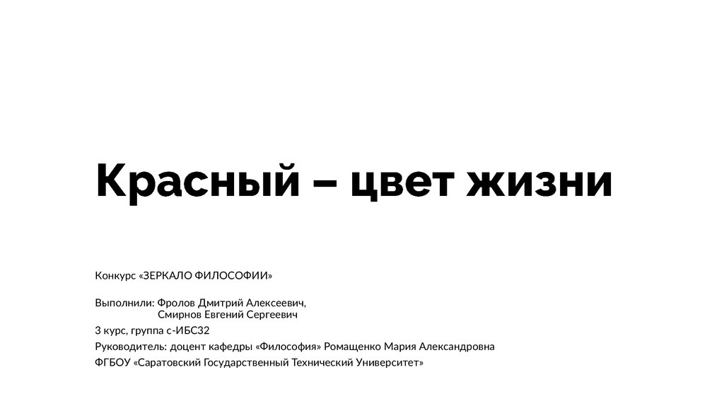 Зеркало философии. Красный, цвет жизни