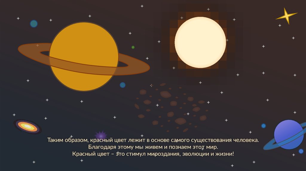 Таким образом, красный цвет лежит в основе самого существования человека.Благодаря этому мы живем и познаем этот мир!