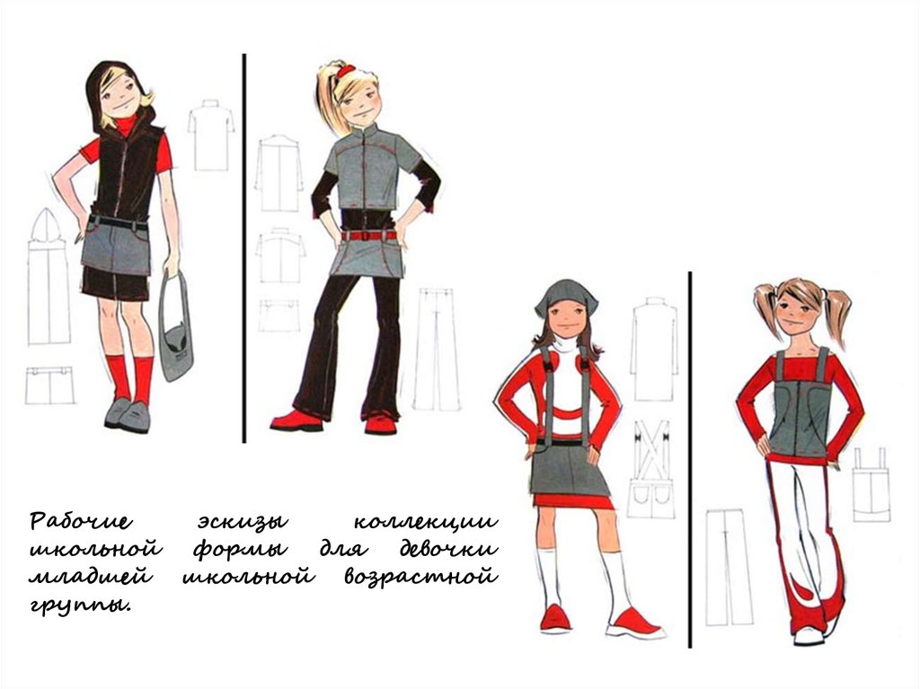 Рисование фигуры ребёнка с учётом возрастных особенностей телосложения. Рабочие эскизы коллекции школьной формы