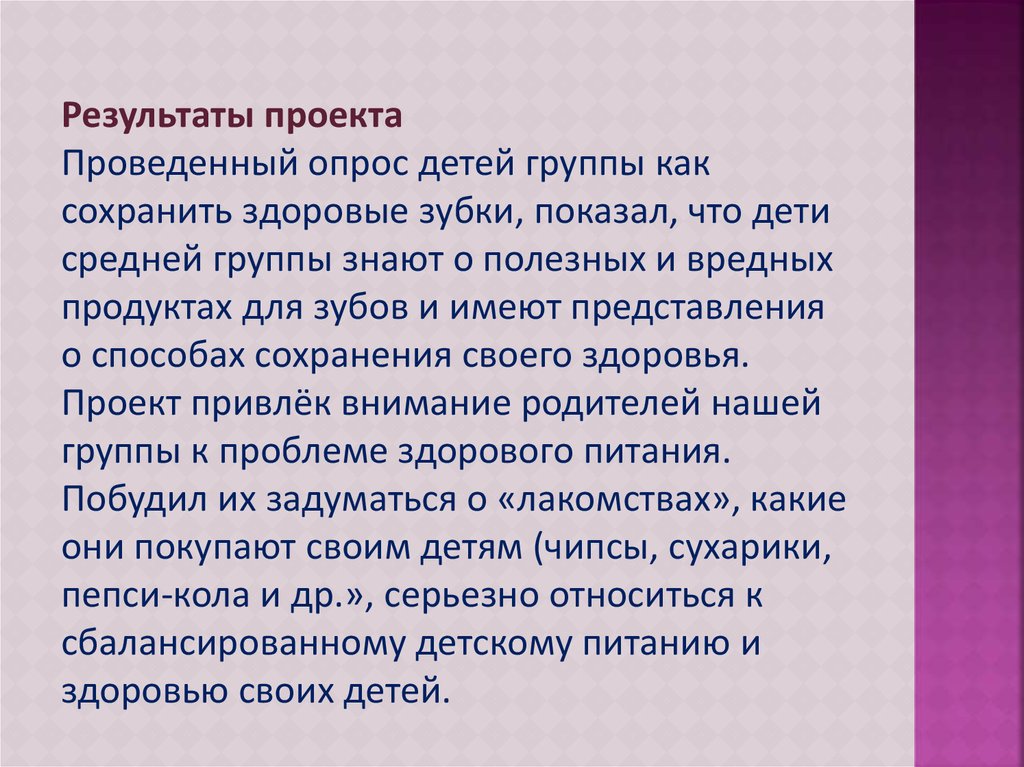 Результаты проектаПроведенный опрос детей группы как