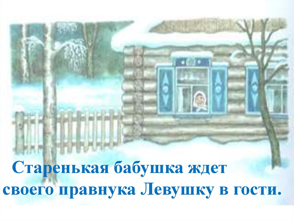 Старенькая бабушка ждетсвоего правнука Левушку в гости.