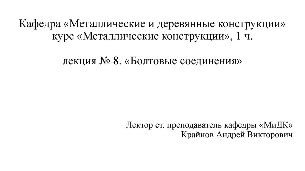 Металлические конструкции. Болтовые соединения. (Лекция 8)