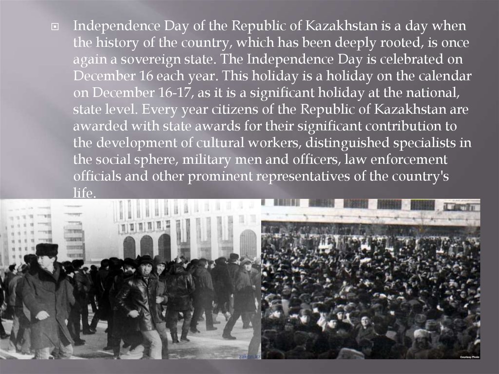 Independence Day of the Republic of Kazakhstan is a day whenthe history of the country, which has been deeply rooted, is once