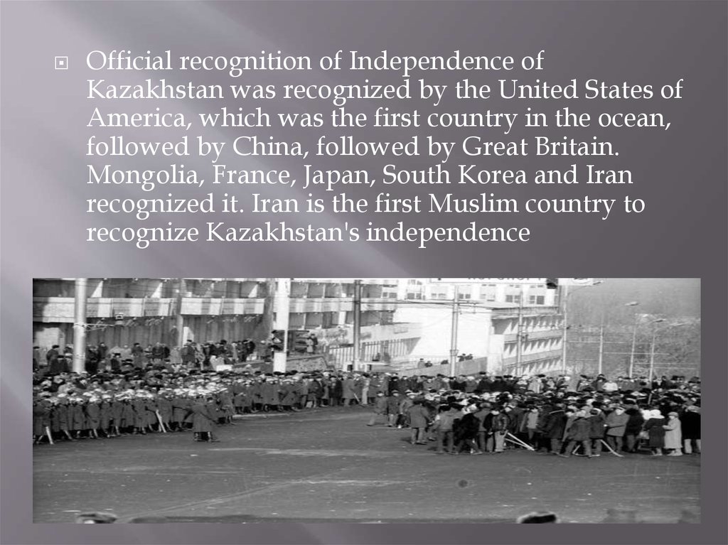 Official recognition of Independence ofKazakhstan was recognized by the United States of