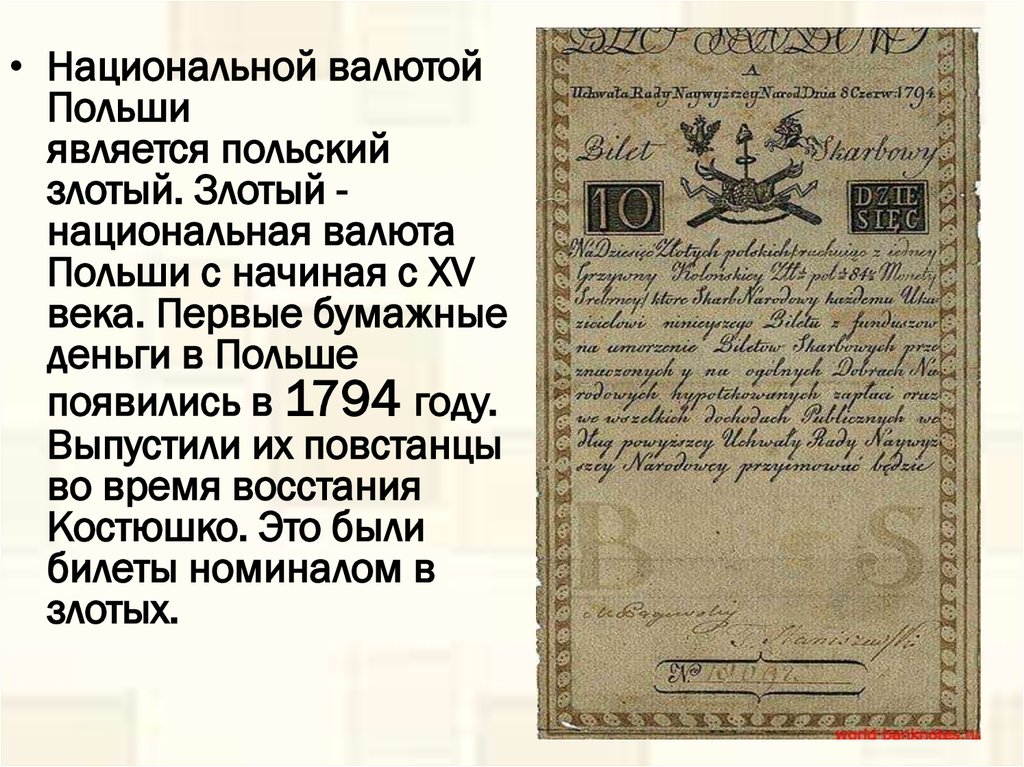 злотый. Злотый национальная валюта