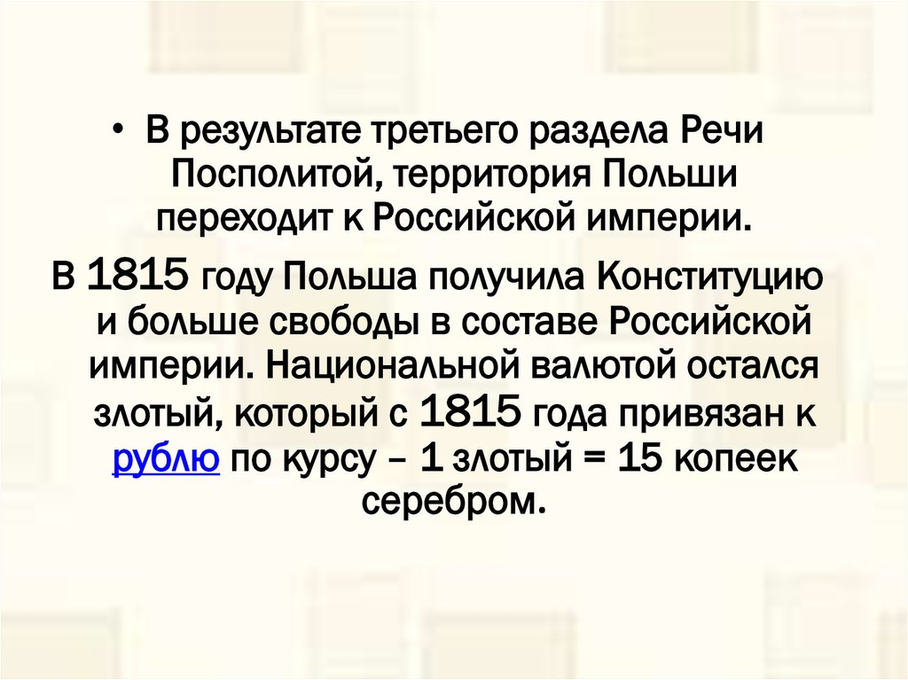 злотый, который с 1815 года привязан к