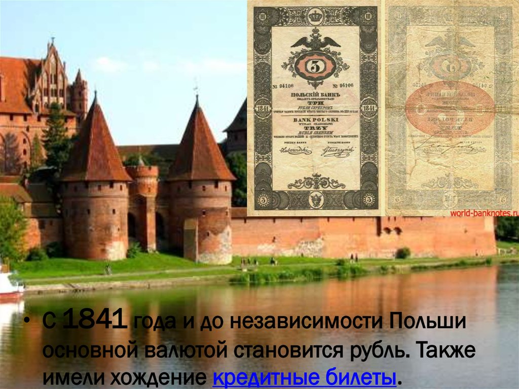 • С 1841 года и до независимости Польшиосновной валютой становится рубль. Также