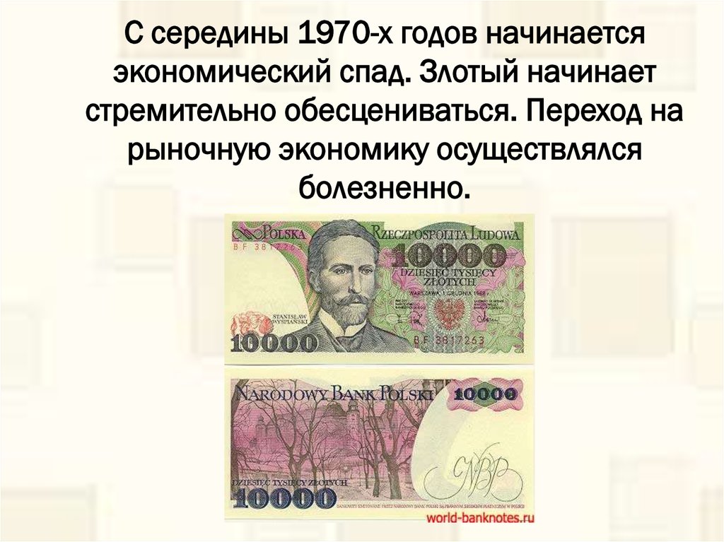 С середины 1970-х годов начинаетсяэкономический спад. Злотый начинает