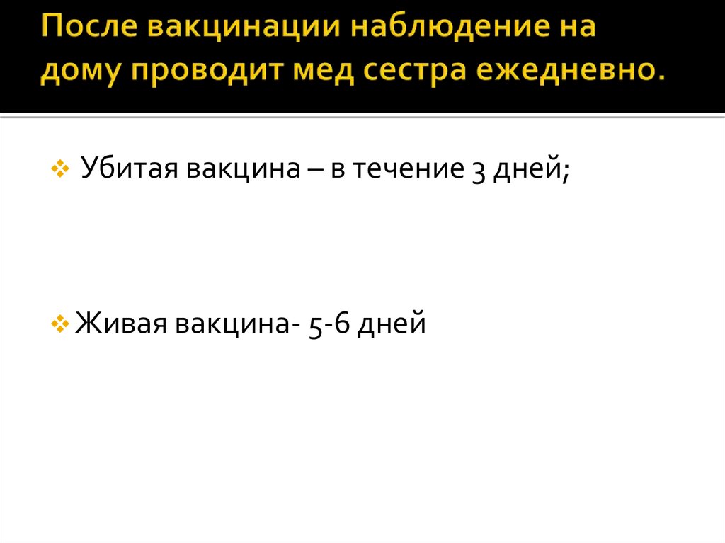 Убитая вакцина – в течение 3 дней;Живая вакцина- 5-6 дней