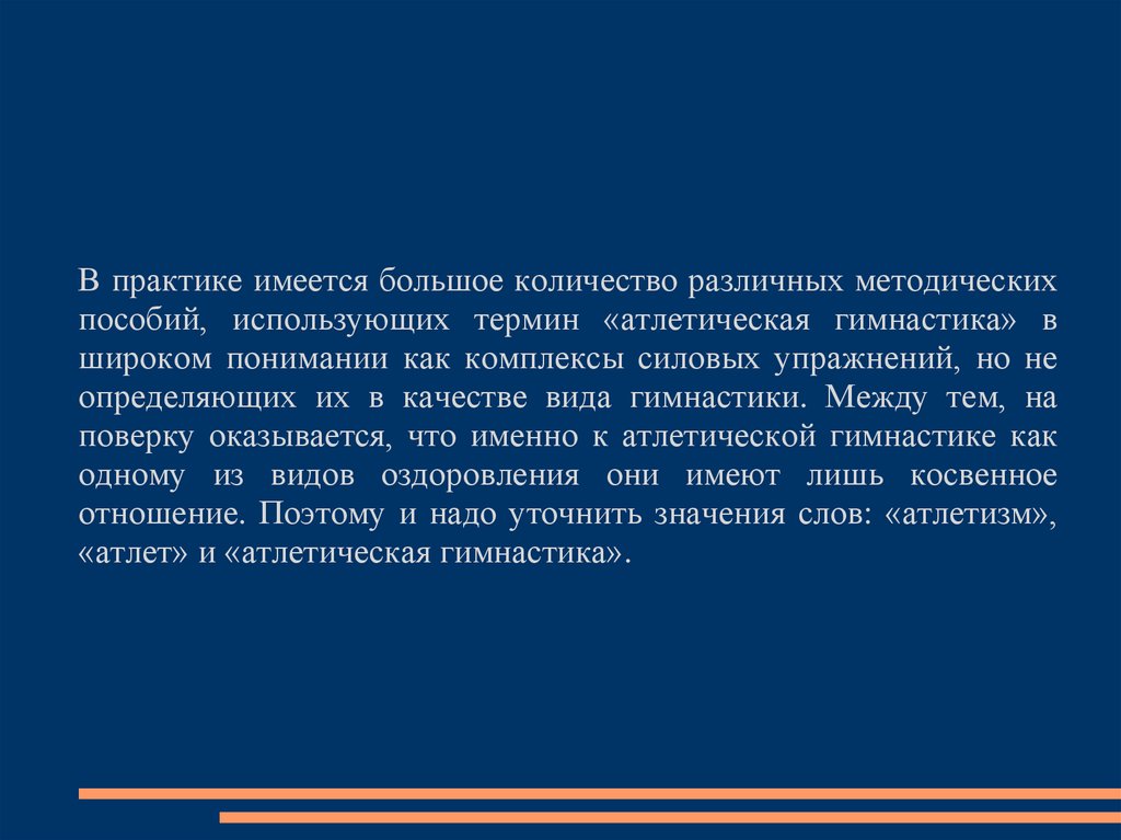 В практике имеется большое количество различных методическихпособий, использующих термин «атлетическая гимнастика» в