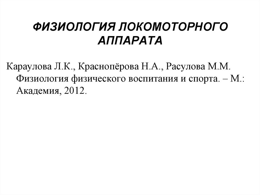 Караулова Л.К., Краснопёрова Н.А., Расулова М.М.Физиология физического воспитания и спорта. – М.: