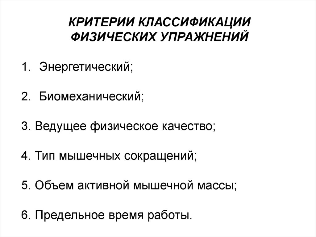 КРИТЕРИИ КЛАССИФИКАЦИИФИЗИЧЕСКИХ УПРАЖНЕНИЙ