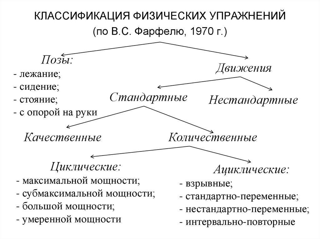 КЛАССИФИКАЦИЯ ФИЗИЧЕСКИХ УПРАЖНЕНИЙ(по В.С. Фарфелю, 1970 г.)