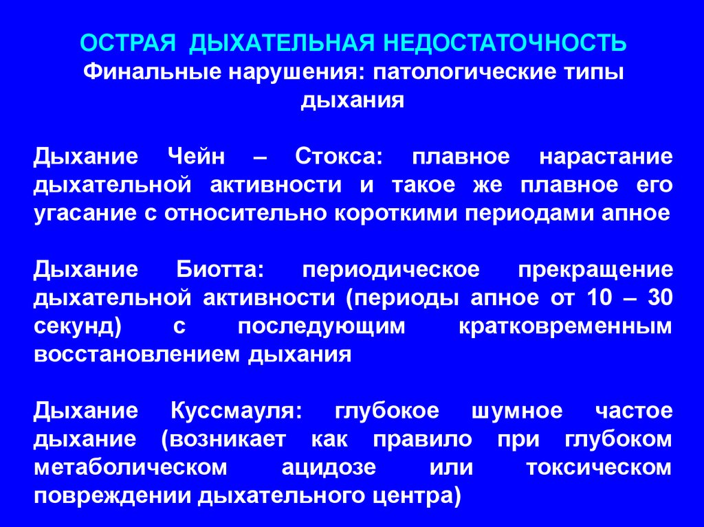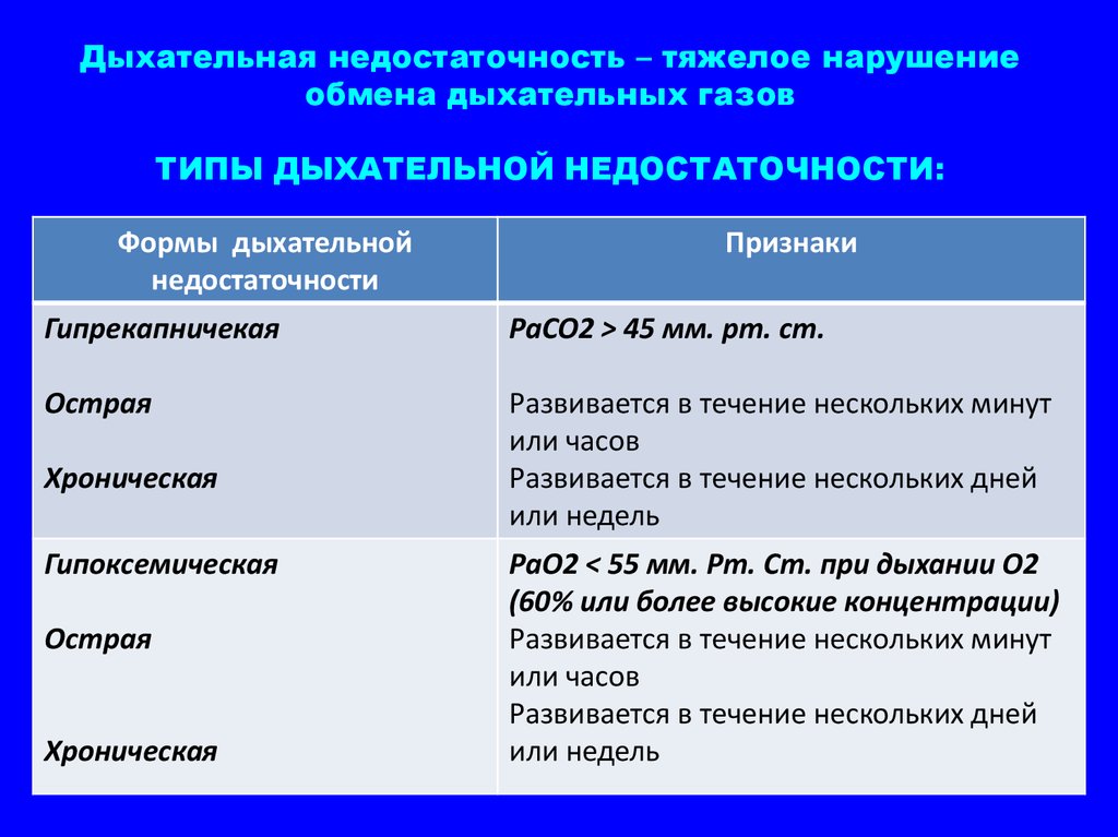 ТИПЫ ДЫХАТЕЛЬНОЙ НЕДОСТАТОЧНОСТИ: