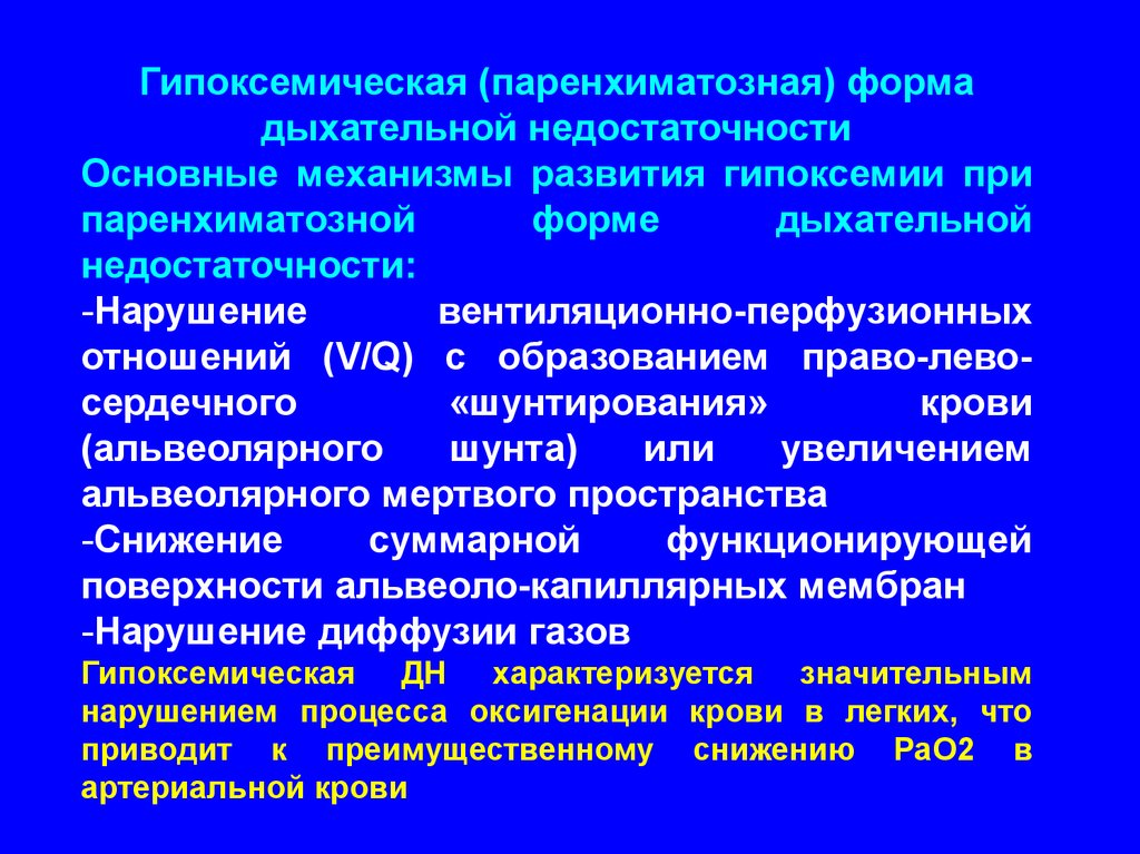 ДЫХАТЕЛЬНАЯ НЕДОСТАТОЧНОСТЬПАТОФИЗИОЛОГИЧЕСКИЕ МЕХАНИЗМЫ И