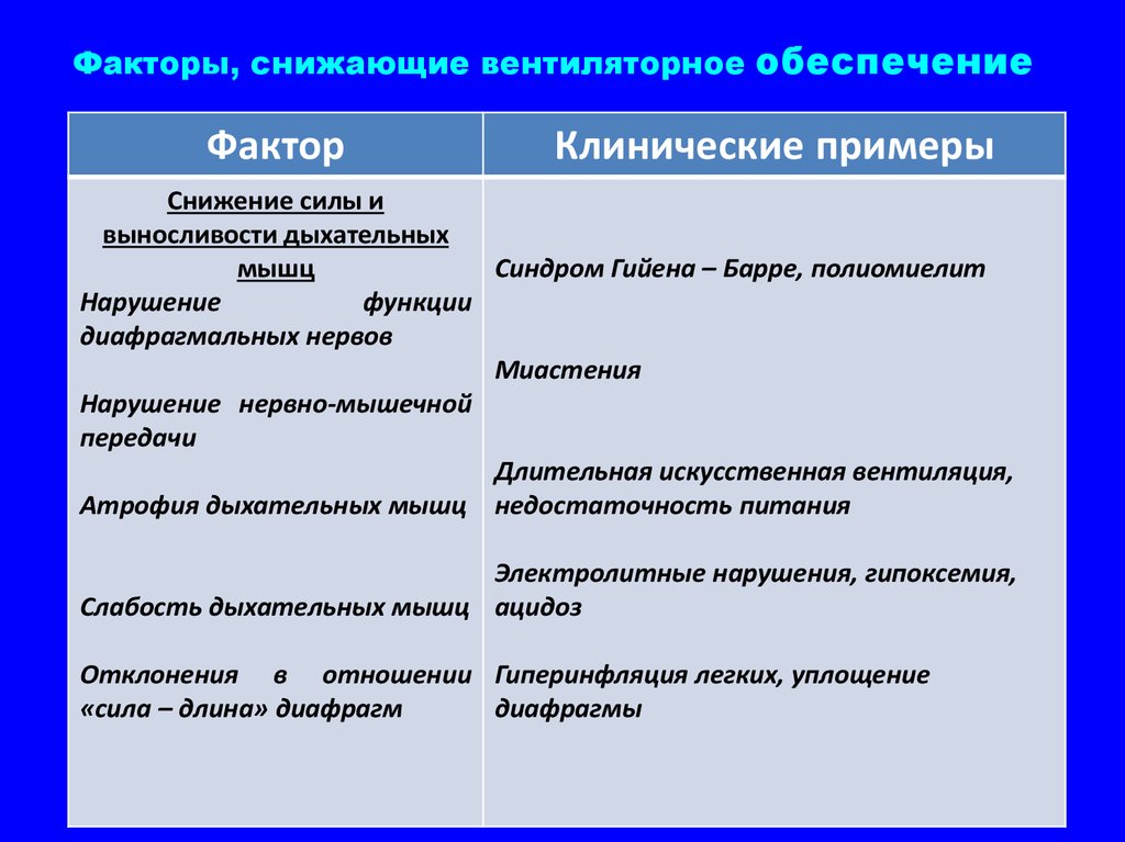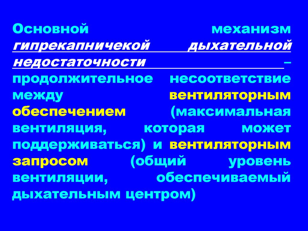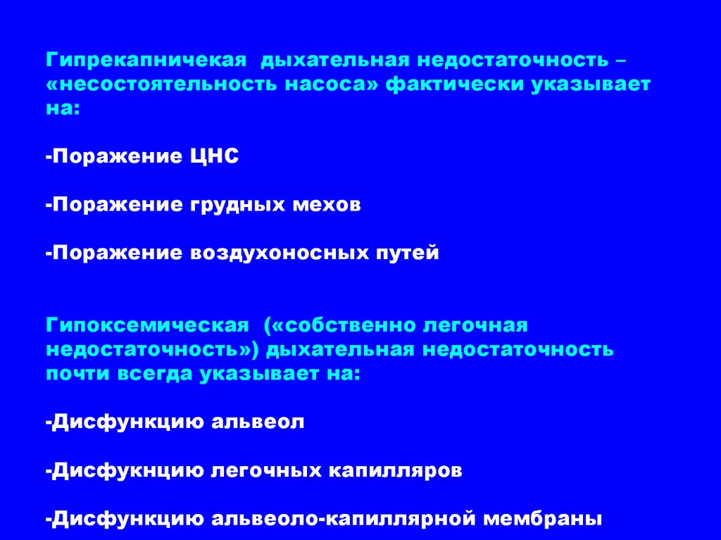 Гипрекапничекая дыхательная недостаточность –«несостоятельность насоса» фактически указывает