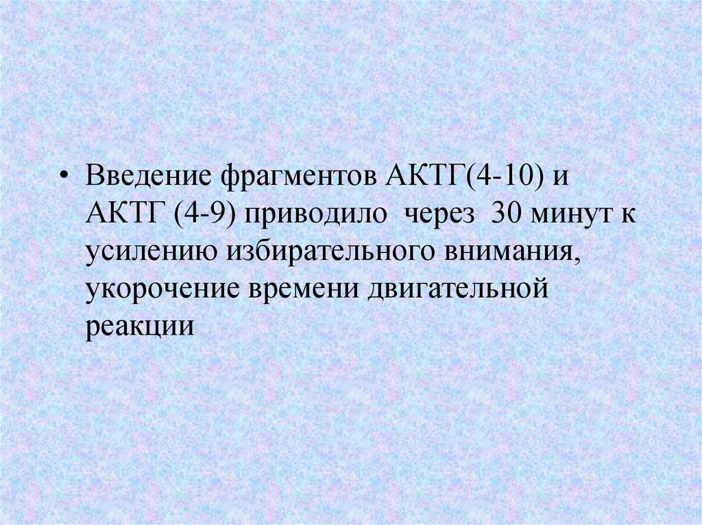 • Введение фрагментов АКТГ(4-10) иАКТГ (4-9) приводило через 30 минут к