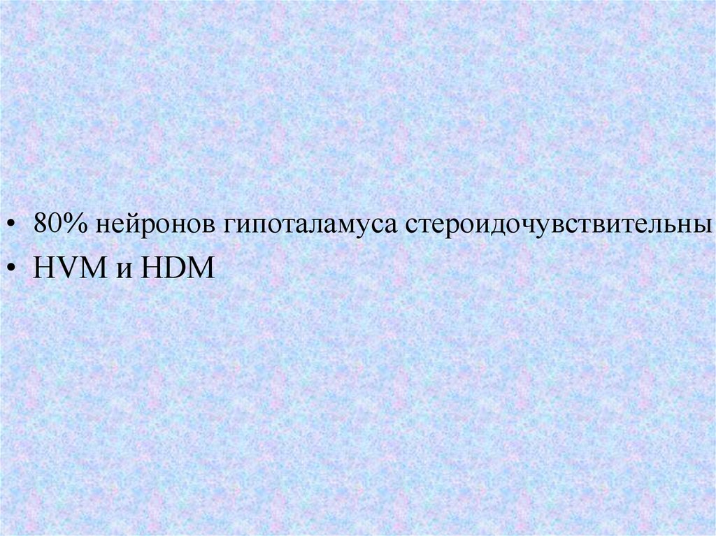 • 80% нейронов гипоталамуса стероидочувствительны• HVM и HDM
